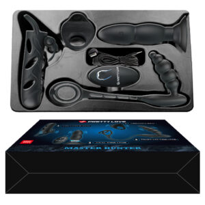 Disfrute de un placer lujoso y cuatro veces más diversión con la colección Master Hunter de 4 piezas. Listo y esperando para desatar una estimulación poderosa, este cuarteto juguetón es perfecto para sesiones en solitario y juegos en pareja. Sorprende a tu pareja con esta caja de golosinas y pasad una noche divertida de juego para ambos. Disfrute de un plug anal que vibra y gira, un plug anal de varias velocidades unido a un anillo para el pene de silicona, una funda para el pene con una bala de conejo vibrante y un anillo para el pene impulsado por una bala para brindarles a usted y a su pareja vibraciones que inducen el clímax. Con tanto para elegir, volverás a este kit una y otra vez.